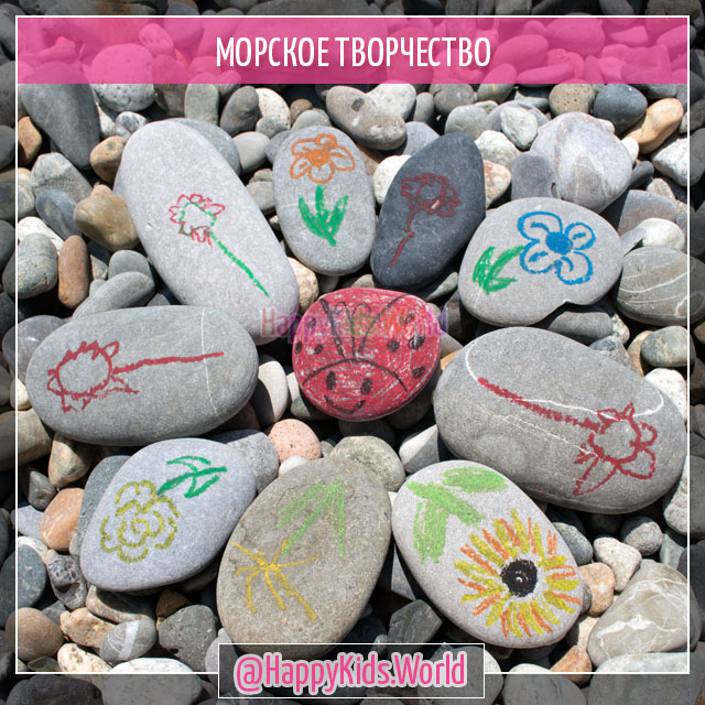 Дома дочку практически не заставить рисовать. В основном хватает на пару росчерков в стиле каля-маля, а вто на пляже очень понравилась идея рисовать на камнях.