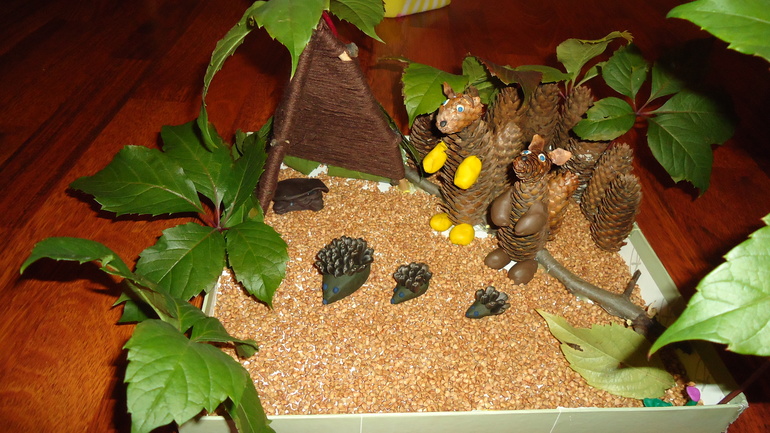 Галерея идейРешили мы поучаствовать в конкурсе " Осенние поделки из природных материалов". Собрали шишек, веточек, листиков... 2 часа работы (1,5 часа на обдумку "что же может получиться из того что есть в наличии") и вуа-ля, прошу н судить строго :)