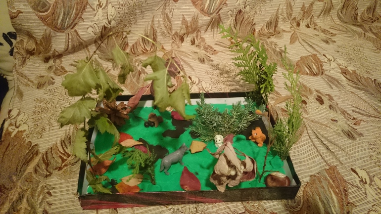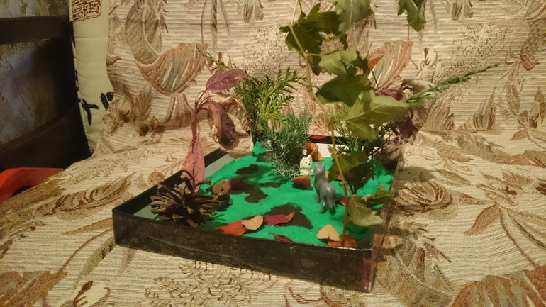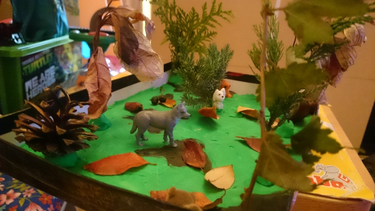 Ну а больше всего маленькому рукотворцу понравилось делать парк с детской площадкой и с белочкой на дереве.