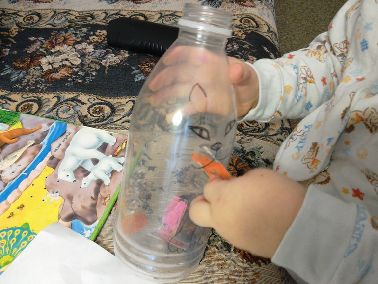 Бутылку (хотела из-под геля, но она нам не подошла, взяли из-под молока)