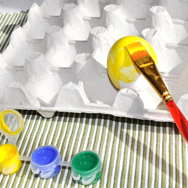 2. Готовую скорлупы с внешней стороны мы окрашиваем гуашью в понравившийся нам цвет и даем ей высохнуть.