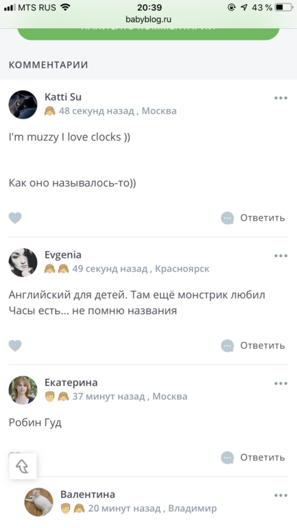 Валентина в Угадай фильм по кадру 6 лет За Аладдина Угадай МУЛЬТфильм по кадру Посмотрите еще 20 записей на эту тему Отменить Ответить Валентина В общем я запуталась кто выиграл😀 03.09.2019 Ответить ˙·•๑♥Юлия Евгения! 03.09.2019 Ответить Katti Su I'm muzzy I love clocks )) Как оно называлось-то)) 03.09.2019 Ответить Evgenia Английский для детей. Там ещё монстрик любил Часы есть... не помню названия 03.09.2019 Ответить Katti Su Это прям смешно как мы с вами😄😄😄 03.09.2019 Ответить Evgenia :)) если быть точной вроде как Big Muzzy он назывался 03.09.2019 Ответить Katti Su Muzzy in Gondoland, Маззи в Гондолэнде 03.09.2019 Ответить Evgenia Точно 03.09.2019 Ответить Evgenia Muzzy 03.09.2019 Ответить Екатерина Робин Гуд 03.09.2019 Ответить Валентина Нет 03.09.2019 Ответить За Жил был пес за "Маззи в Гондолэнде" Чаты Беременных Выберите чат: Январята-2026 Февралята-2026 Мартята-2026 Апрелята-2026 Майчата-2026 Июнята-2026 Июлята-2026 Августята-2026
