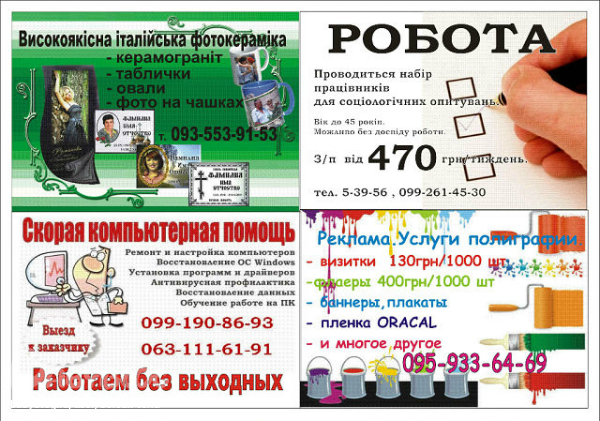 Лена в Украина 13 лет Чем я занимаюсь.Мои работы. Работа А я вот чем занимаюсь , не столько для кошелька , сколько для настроения.Создаю макеты для визиток,флаеров,баннеров,пакатов,замена фона на фотографиях,печать фото на чашках , вобщем всё такое.Так что если кому чего надо - обращайтесь . Посмотрите еще 20 записей на эту тему Отменить Ответить Как заработать 3250 евро в интернете девушки, работа в интернете (Вебмани) Чаты Беременных Выберите чат: Январята-2026 Февралята-2026 Мартята-2026 Апрелята-2026 Майчата-2026 Июнята-2026 Июлята-2026 Августята-2026