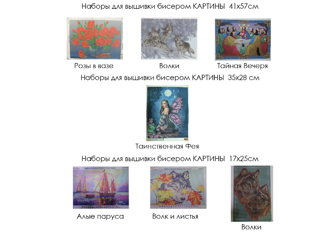 хотелось бы узнать цену за наборчики "Волки" (41х57) и "Алые паруса" (17х25)