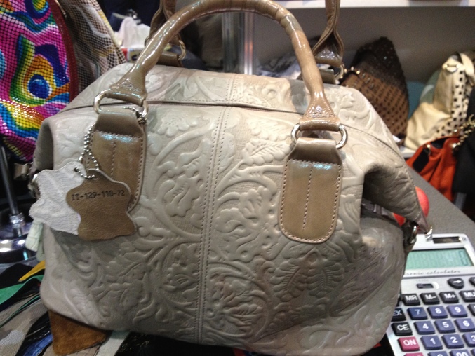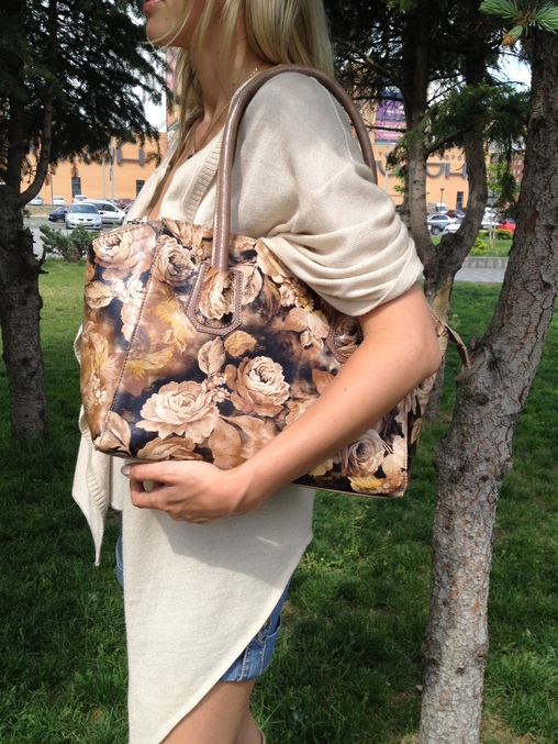 2) Бежевая кожа с розами: высота 27 см*длина 33,5 см* ширина 11,5;