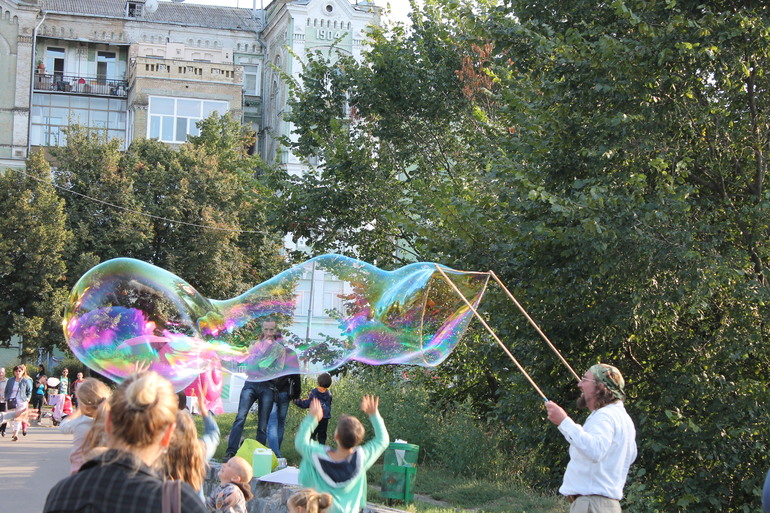 этот веселый дядечка развлекал малышей большими мыльными пузырями. совершенно безвозмездно)