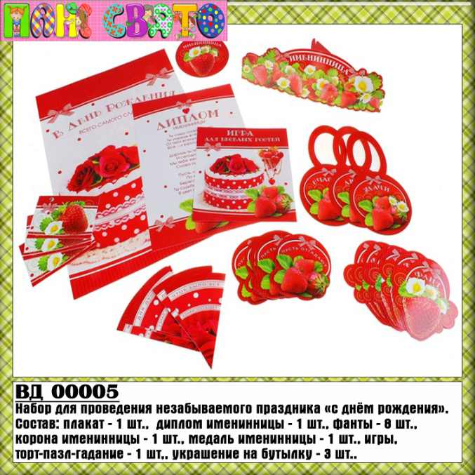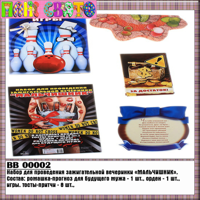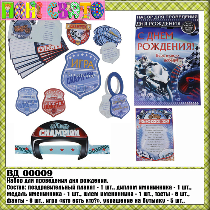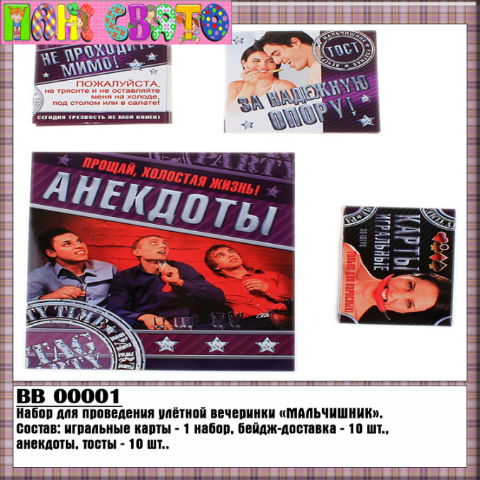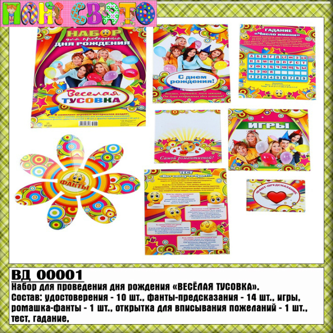 У нас Вы найдёте широкий выбор красочных наборов для проведения незабываемых праздников! В наборе Вы получите: идею вечеринки, тематический реквизит, игры, развлечения, простые и ясные инструкции! Наши наборы - это праздник без тамады, на любого из гостей может выпасть роль ведущего, но только на один конкурс! Весёлый праздник можно устроить в любом месте, дома, за городом, на даче, в офисе!