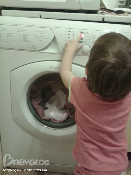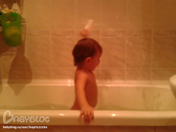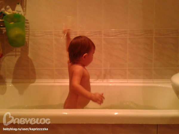 Водные процедуры :) Не знаю, понятно или нет, но в общем, ребенок занят тем, что набирает в стакан с дырками воды и резко им взмахивает... Ванная медленно, но верно превращалась в болото :))