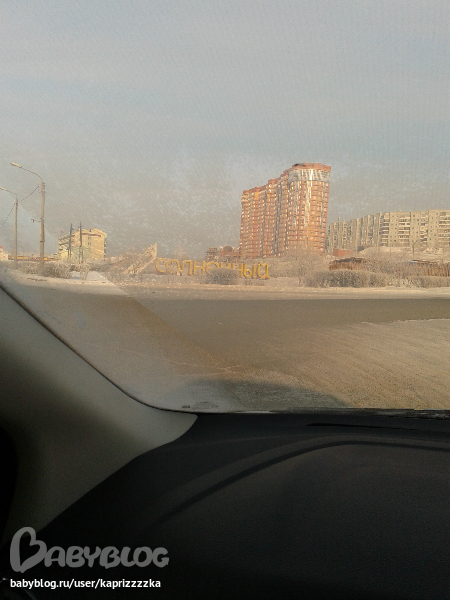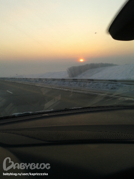 До родителей проще всего от нас ехать, минуя мильон светофоров, через объездную трассу. Никого нет, можно разогнаться... А вот и солнышко встало... Всё в дымке от мороза, них* не видно