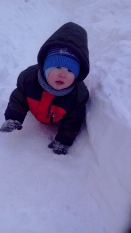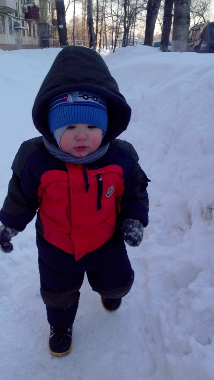 Погода уже стала позволять -15 уже можно и по 2 часа)))) а то всю зиму лютый мороз был так мы на 15-20 минут выходили и мерзла я а не сын. Папа гулял подольше конечно)))
