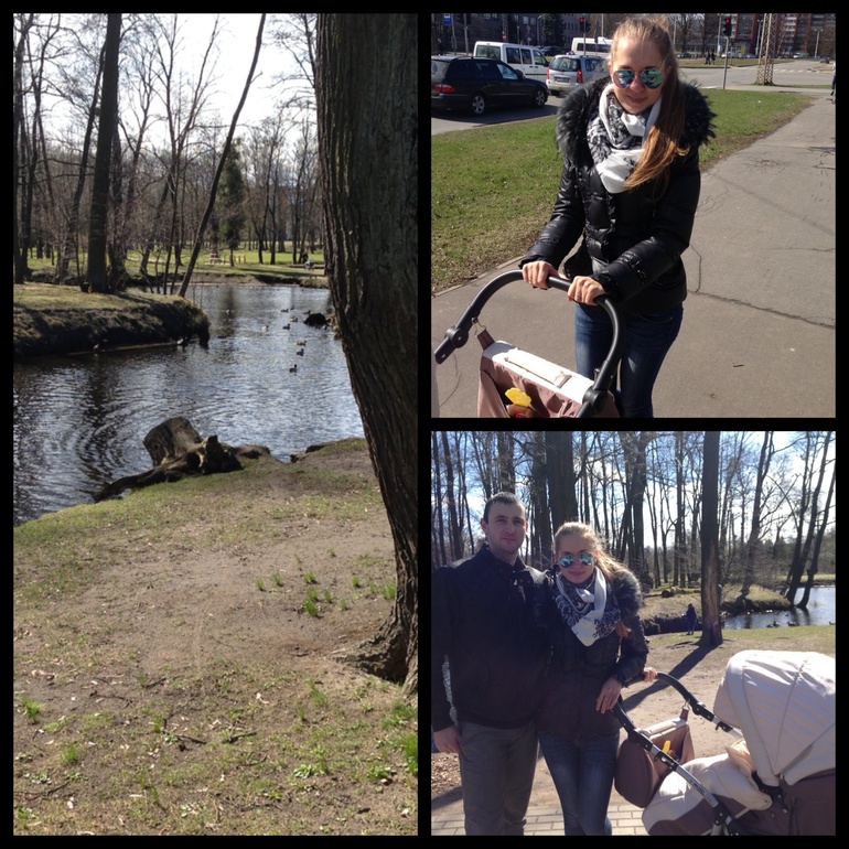 Хоть и светит на улице солнышко, но всё равно прохладненько ещё( Встретили в парке мужа маму, пофоткала хоть нас вместе)