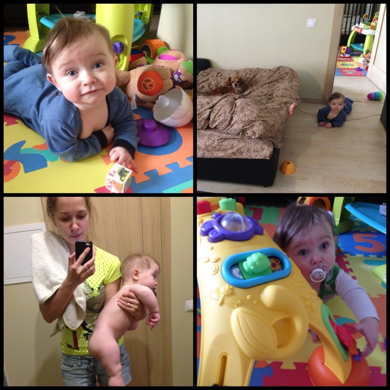 Максимка занят игрухами, а я тем временем привожу себя в порядок))) И иногда заглядываб в комнату к Максимке)