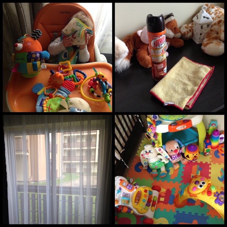 После завтрака неплохо бы убраться(хотябы в детской). Пока Максимка занят своими делишками в стульчики, я занимаюсь уборкой и проветриванием комнаты)
