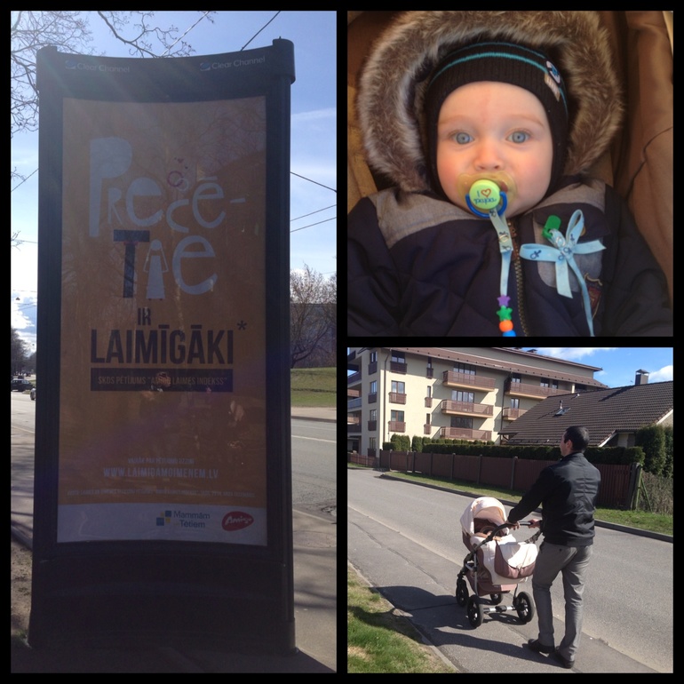 Собираемся на прогулки и как раз возвращается наш папа, идём все вместе гулять( машина не понравилась), Максимка сразу уснул)