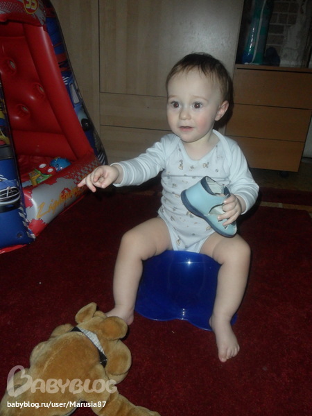 И сразу на горшочек (мама посадила, сами пока не умеем)..
