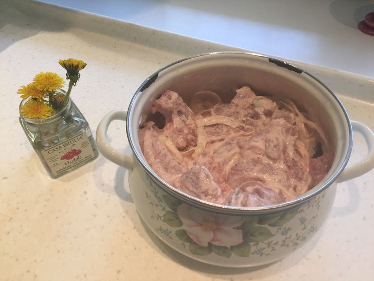Пока собирала на стол, забежала в гости сестра, сфоткалась с местной достопримечательность-майонезом))), позвала нас всех к ним в гости ( у них человек 20 народу понаехало)