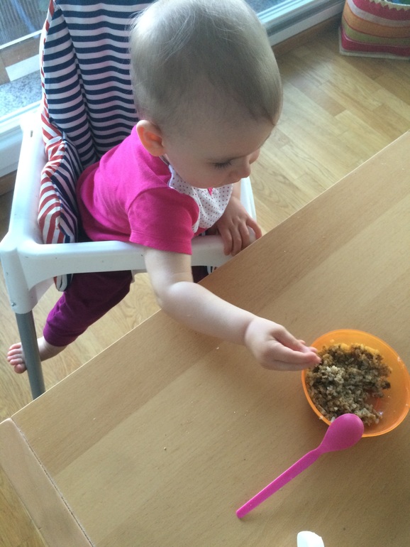 Детская каша не прокатила. Кормлю приготовленными на пару фаршем из индейки и рисом.