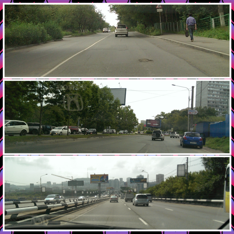 Живем мы на сопке. До дома можно добраться двумя дорогами. Проспект Красоты. Мост через бухту Золотой Рог. Жаль,что погода не достаточно солнечная и небо облачное. Вид получше был бы.