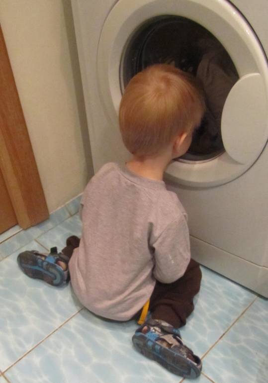 Встаю, забрасывают стирку. Сашуля следит за процессом)