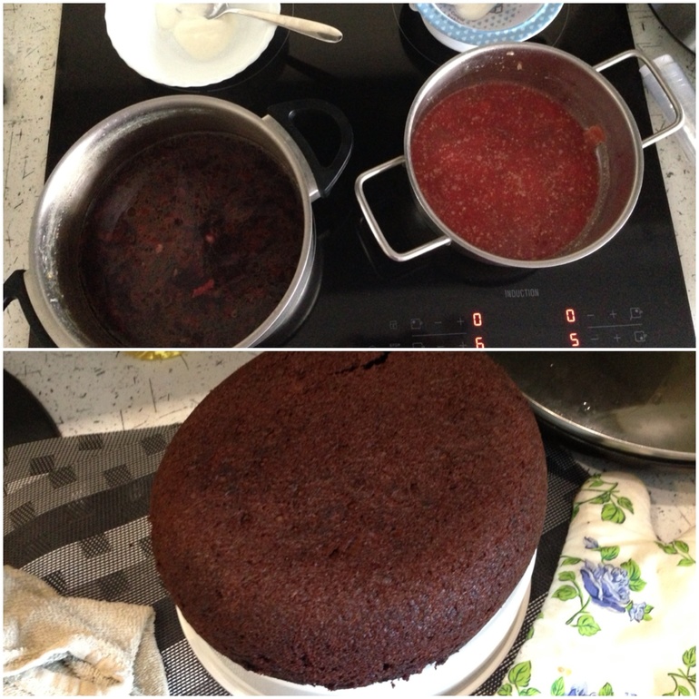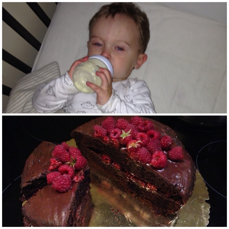 Макс занят своими делами , а я готовлю ужин. После угощаю Макса малинкой, а сама украшаю тортик)