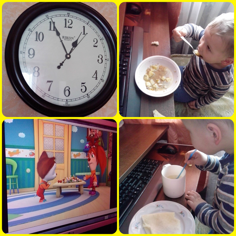 Итак, живем мы втроем, папа встал рано и ушел по делам. Я встала примерно в 8 и приготовила завтрак: папе-вчерашнюю уху, сыну блины. Сын, у которого режутся вторые моляры, очень плохо ест - поэтому я его балую и все позволяю