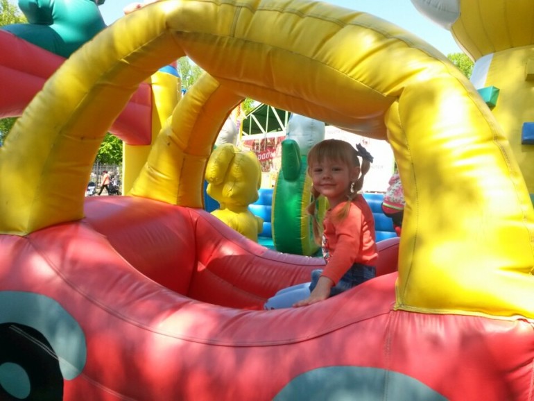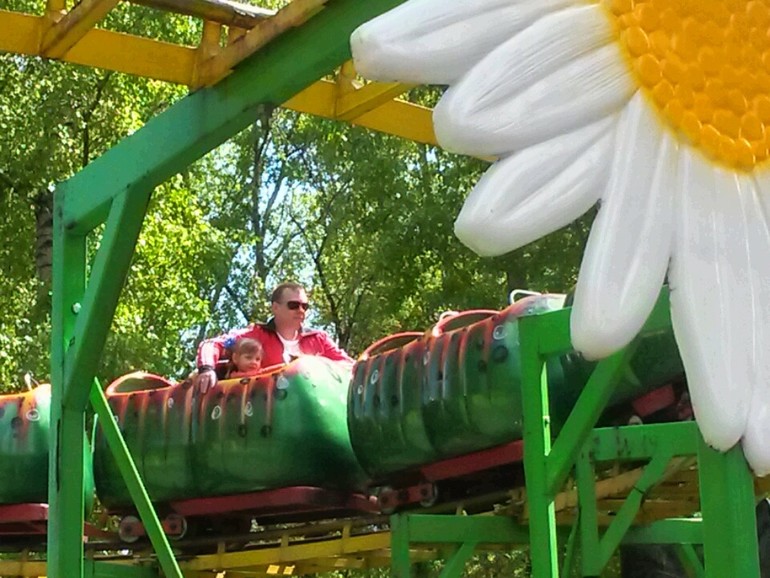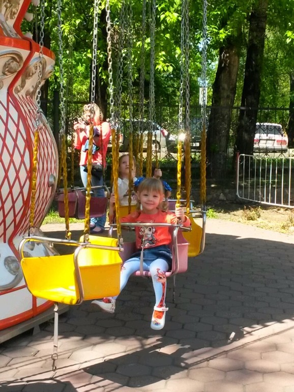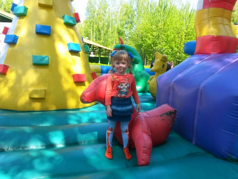 Когда пришли с поликлиники, пошли забирать Алю из садика и пошли в парк аттракционов где к нам присоединился папа.