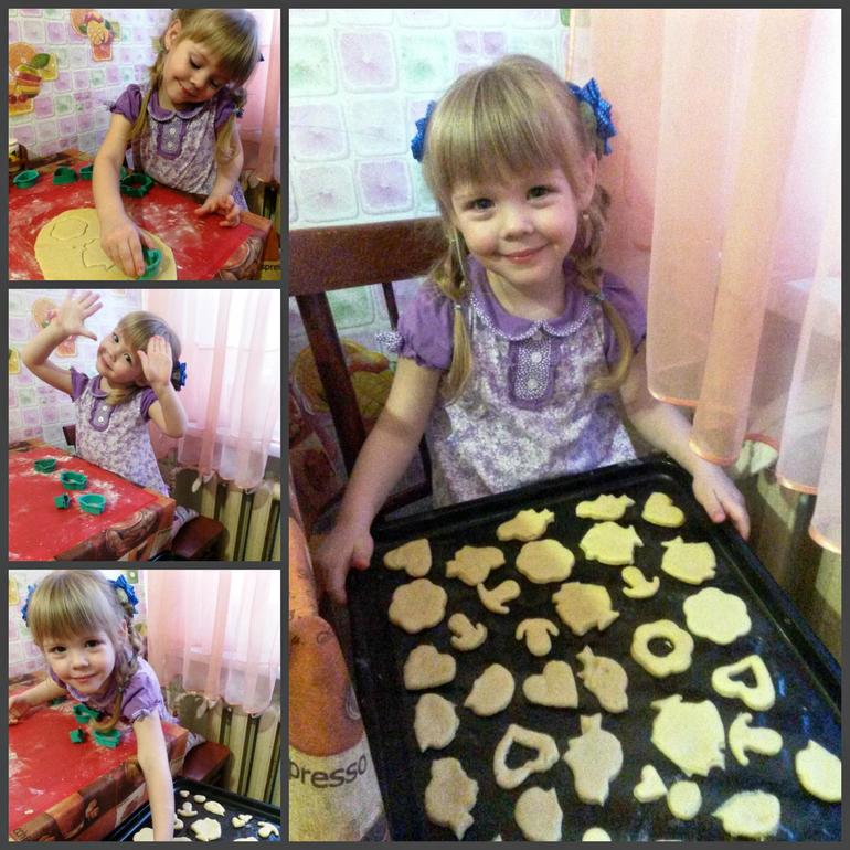 Алька уже встала и мы пошли готовить завтрак вместе, делали печенья.