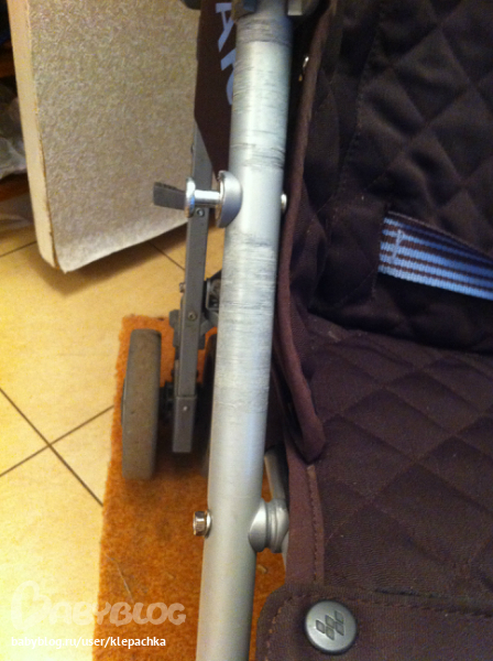 И вот наш мак сегодня. Конечно,если бы на зиму у нас была другая коляска,мак бы так не износился. Порой я думаю,что зря так поступила,безбожно юзая прогулочную трость во всесезонье, тогда коляска была бы в лучшем состоянии,нежели сейчас. Но,с другой стороны, имея ограниченный бюджет и мужа,раздражающегося на все наши траты, просто небыло возможности задуматься о второй коляске (была попытка купить,но супруг невкакую не согласился).На сегодняшний день мой ХЛР выглядит вполне прилично. Из повреждений:- стерлись ручки,там где блестящая часть- выгорел кап (мы все лето под ним ездили)- расшаталась спинка, теперь она на 2-3см проседает в положении 90гр. (это наверно главный минус, ребенку сейчас уже некомфортно полулежа ездить)- черт меня дернул после стирки сидения прогладить его утюгом, в итоге нижнюю часть, которая под ножки, я прижгла. Стирала кстати все!! Даже кап в ванной замачивала и щеткой отстирывала (моя бабушка очень любит шоколадное мороженное,катая мелкого детом посадила туда кучу пятен, но все отстиралось)Колеса. Не скрипят, не разгатались. Если говорить о стертости, то они как после недельной эксплуатации, подстерлись, но никаких дефектов.