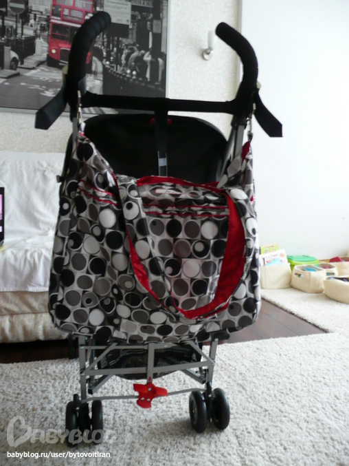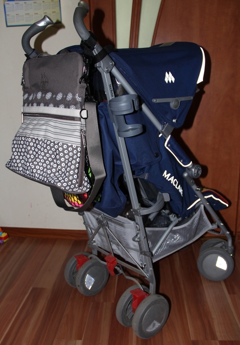 еще думаю можно полукруглые петли примотать к ручкам коляски просто липучками, так сумка будет покороче))