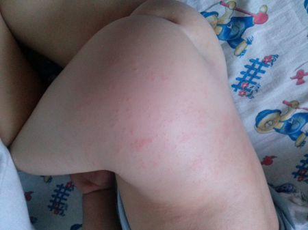 подскажите, пожалуйста, ребенку 1год 10мес, никогда с аллергией дела не имели, а вот неделю назад начало высыпать в области животик и спинка, в течении дней 2-3 прибавилось и чуть спустилось на наружную сторону ножек.. педиатр сказал аллергия... если и в правду, то грешу на краситель пищевой в торте (были на др).. приписала тавегил и гидрокартизоном мазать, смекту раз в день дабы вывести бяку с печени...но настораживает то, что прошла неделя, сыпь особо не ушла, но и не прибавилась..только как-бы форма высыпа изменилась (сразу были более крупные иголчатые прыщики.. сейчас в масюсенькие как при потничке превратилось..но усыпана вся спина, на животе как-то по меньше, фото прикрепила ... аллергия ли это? и чем стоит лечиться так как тавегил, как по мне, не дает результата..спасибо) надеюсь на Вашу помощь