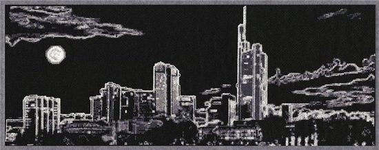 Схемы природы, домиков, архитектуры, интерьерыПомогите, пожалуйста, найти картину города на черной канве, вроде бы они еще светятся в темноте, белые нитки. Как называется серия этих картин?