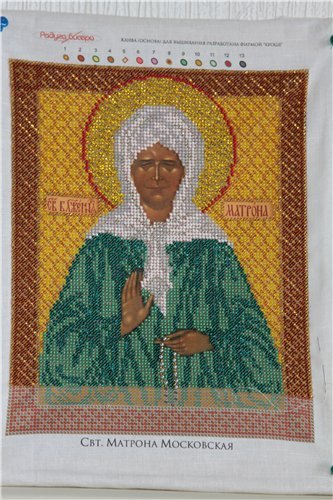 Девочки, всем привет!!! Юля, с возвращением!!! Наконец-то я закончила Матронушку. Буду приступать к попугаю потихоньку. Юля, уже вышитую работу можно показать для отчёта или нет. Или нельзя показывать в оформленном виде и в других местах?