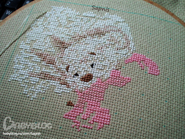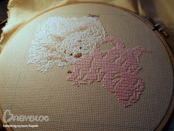 сложновато вышивать, т.к. наклон крестика непривычный и канва очень мягкая и какбы пружинит и тянется сильно