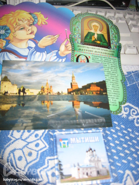 Получила сегодня магнитик из Мытищ. А с Магнитиком подарки: книжечка для Анютеи, молитва и открытка Москва