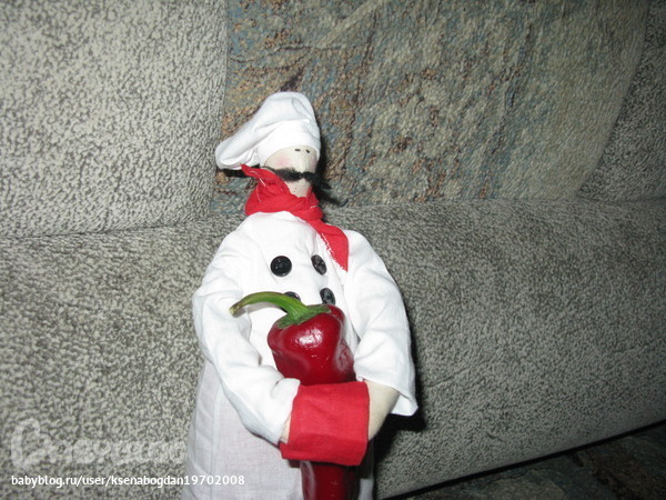 это такой Шеф-повар с настоящими усами (на ощупь!!) и животиком))) А в руках настоящий перец!!!