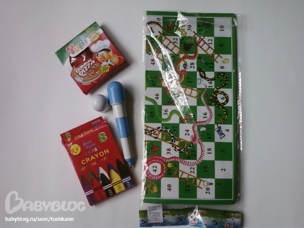 конфетки, мелки, игра ( уже с мелким играли разок) и клевая ручка - старший забрал себе в школу.