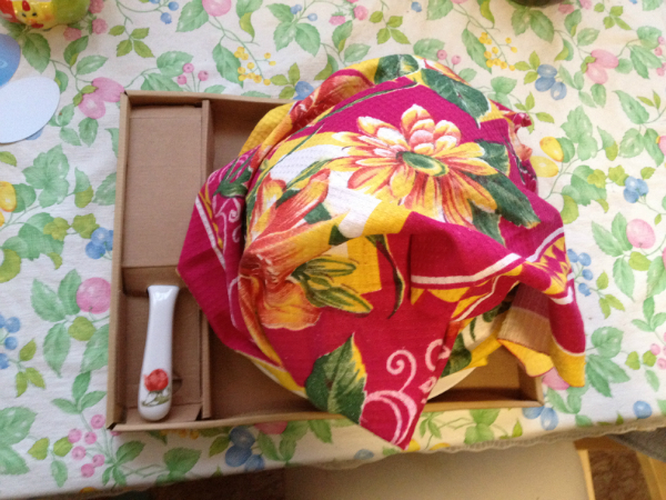 Ну и, конечно, рукоделочка! Чудесная вышитая картинка! И снова все в моей любимой цветовой гамме! Будет радовать меня на кухне, я думаю)