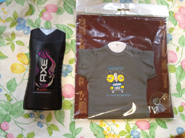 Мужу гель для душа и оберег от грязных дорог в машину(классная штука! первый раз такие вижу)