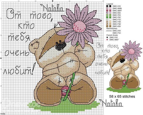 Ириш, можешь подсказать какими номерами мишка вышивается, по моей схеме уж очень бледный получается, а тебя по-моему ярче и на много.