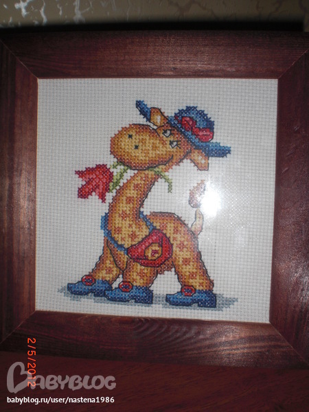Вот такого чудесного жирафика Ирина вышила для нас!Сынуля забрал сразу же его к себе в комнату!поставил возле компьютера и любуется каждый день: