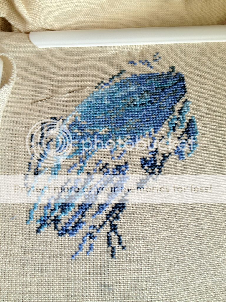 это и привлекло меня в этой птичке, там наверное все оттенки синего ДМС собрали