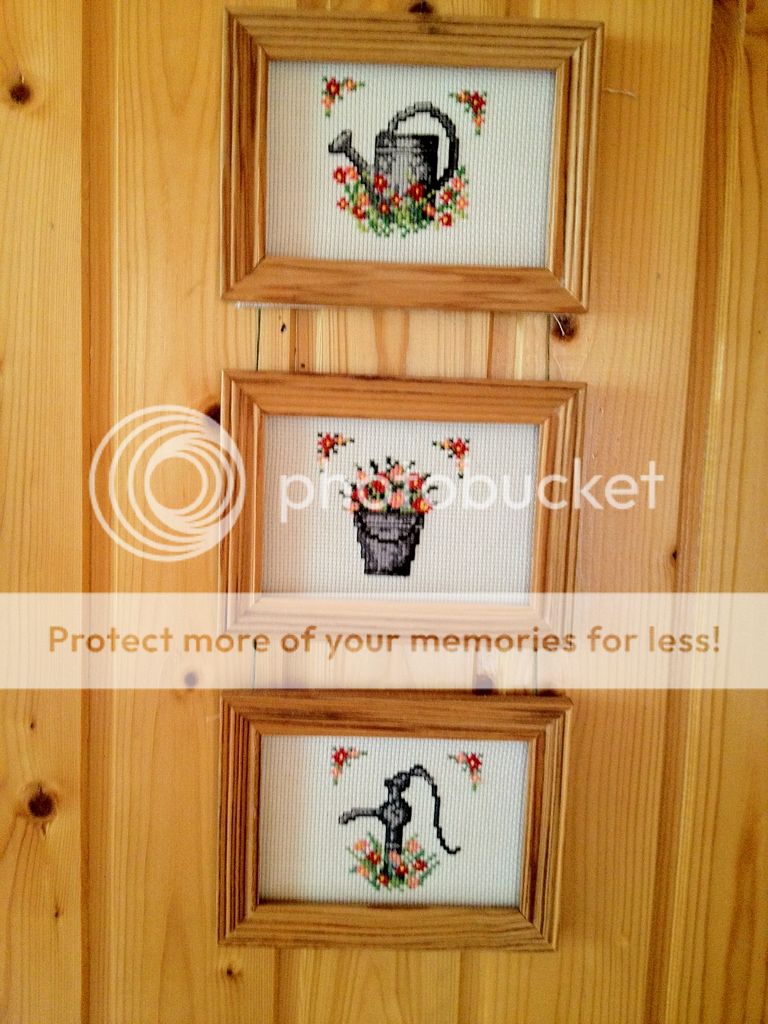 Была на даче, сфоткала самую первую вышивалочку, очень ее люблю, пошла в комиссионку за лосинами, а купила вот такие наборчики, удивительно для меня это было, до сих пор висят на даче, приклеены к самоделанным рамочкам, без стекла.