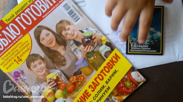 Прилетел привет от Анечки!!! магнитик Щелково и кулинарный журнальчик прям в тему-)))!