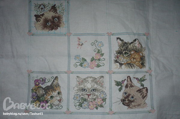 Вот сейчас на фото смотрю и понимаю, что не тот там цвет вышит. Там всего несколько крестиков - может ты распустишь потом? И еще я потом нашла у себя этих кошечек, ты же мне высылала - посмотрела, точно кажется цвет должен был быть на много светлее. В ключе было не понятно и я промазала с цветом.