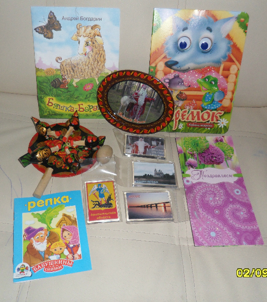 Огромное спасибо Катерине (Semicvetnaya) за такую красоту!!!!!!!!Целых четыре магнита,книжечки для дочки,тарелочка на стену(я их тоже собираю помимо магнитов).И с приветом от деда Мороза деревянная игрушка курочки!!!!!!!