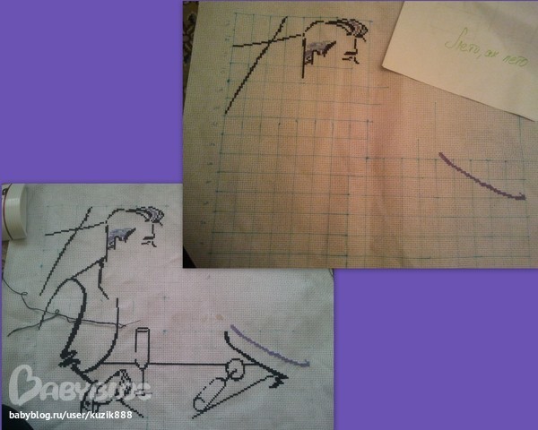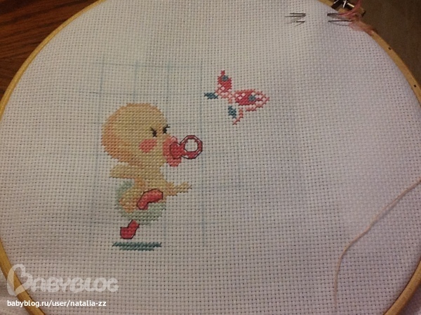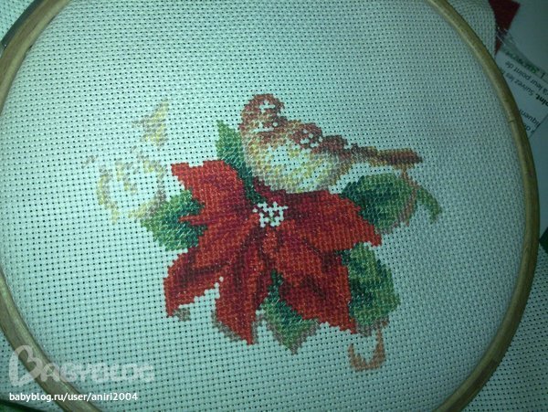 Постараюсь в ближайшем будущем к нему вернуться,жалко свою работу...Почти половину сделала!Просто поняла что не могу больше к нему подходить!Не тянет совсем.Малыш вот тоже не идет из-за того что на пяльцах.Привыкла к станку и пяльца держать уже вообще не удобно.Но по-любому закончу в этом ВД!Надо же будет на голосование хоть одну готовую работу показать)))))