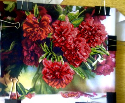Нееее..Лен..пионы не осилию к след. этапу..Я ж бисером тока во время дневного сна Саши вышиваю..Вот ща он спит..нет бы повышивать...Но чет в тырнете залипла....Но надо и тут посидеть. Так как када он не спит..он ниче не дает делать...тока читаем..поем.....играем..танцуем)))