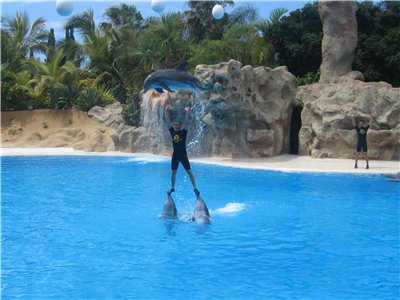 о. Тенерифе: 1. Вид из окна отеля, 2. На страусиной ферме жарят яичницу (МК), 3. вулкан Тэйдэ, 4. шоу дельфинов в ЛороПарке, 4. Аквариумный житель в ЛороПарке