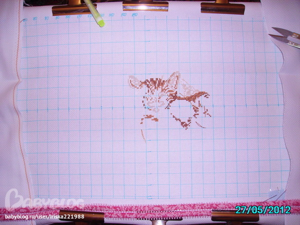 По поводу вышивки что могу сказать...Задолбал меня тигр!Мне не нравится 11 канва,поэтому решила от него отдохнуть.Все равно в этом ВД я уже точно не успею его закончить.Хотела начать Семейство мишек,но посмотрела там в наборе тоже 11 идет канва.Поэтому взялась за Котиков)))