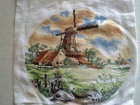 Вот мой отчетик..Пиончики аааащееее не вышивала....Днем мы не спали..вернее спали в машине..А вечером я падала от усталоси. Шилась тока мельничка. Вот что было и стало: